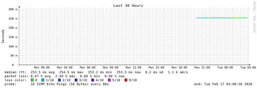 28 > 196.190.130.83 (196.190.130.83) [AS24757] 253.955ms 253.359ms 252.941ms
