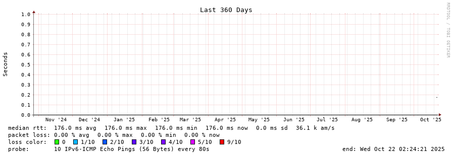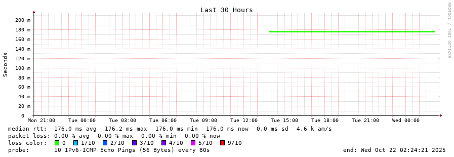23 > lag-1-0.rt0.lju.si.geant.net (2001:798:cc:1::125) [AS20965] 176.529ms 176.541ms 176.503ms