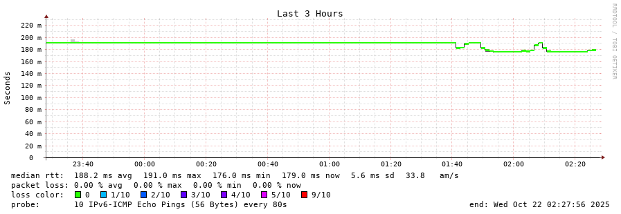 23 > 2a0c:9a40:8610:e3f::1 (2a0c:9a40:8610:e3f::1) [AS215362] 191.198ms 191.170ms 191.168ms