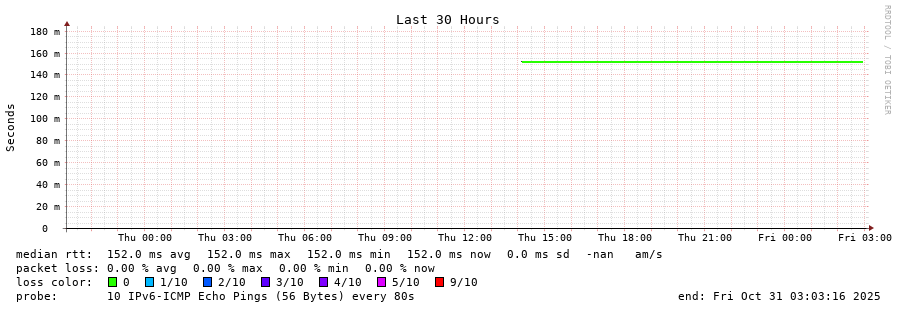traceroute to 2001:41d0:302:1000::18:665e (2001:41d0:302:1000::18:665e), 30 hops max, 80 byte packets - Generated at 2025-10-31 02:45:01