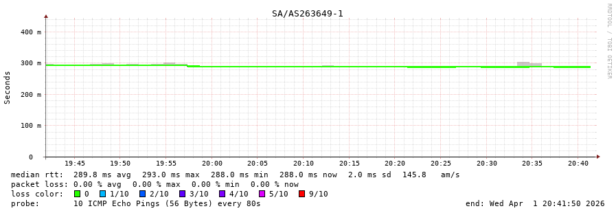 41. Median RTT 0.291 seconds