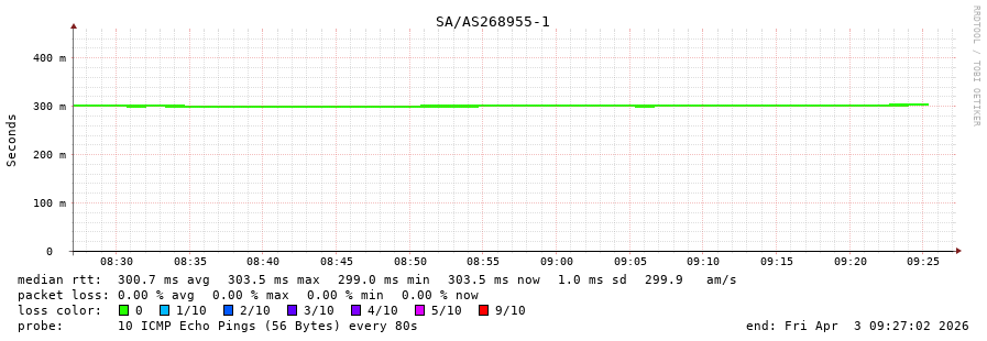 34. Median RTT 0.303 seconds