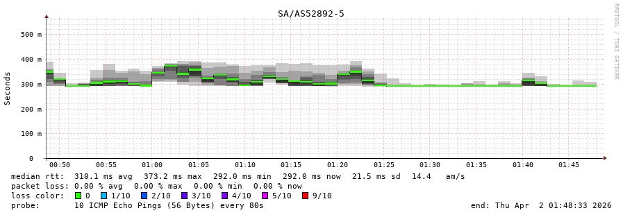 23. Median RTT 0.309 seconds
